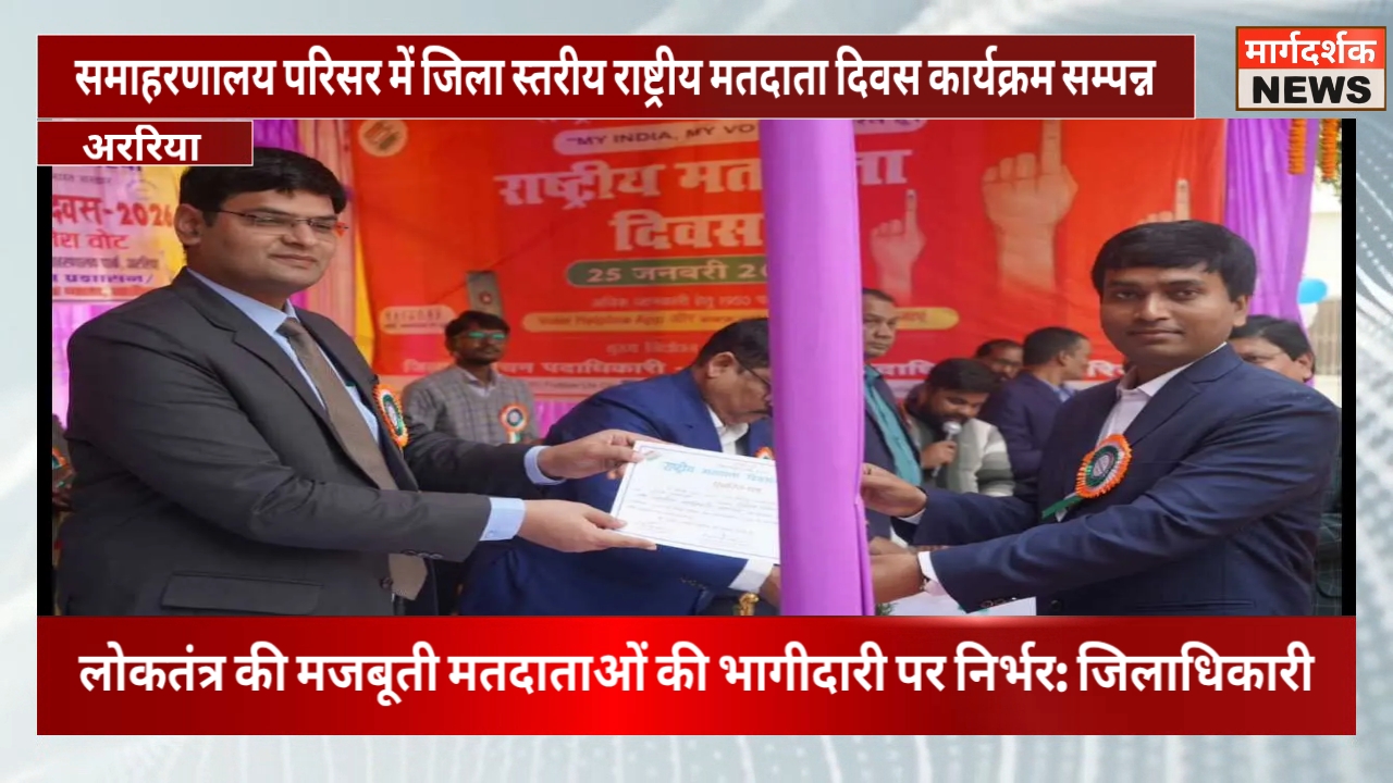 अररिया जिले में राष्ट्रीय मतदाता दिवस समारोहपूर्वक मनाया गया। जिला स्तरीय कार्यक्रम का आयोजन समाहरणालय परिसर स्थित पार्क में किया गया। कार्यक्रम की अध्यक्षता जिलाधिकारी सह जिला निर्वाचन पदाधिकारी श्री विनोद दूहन ने की।